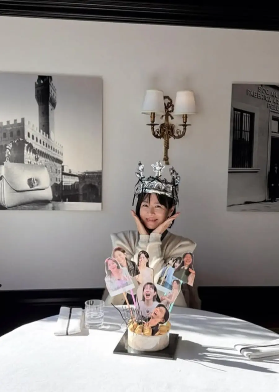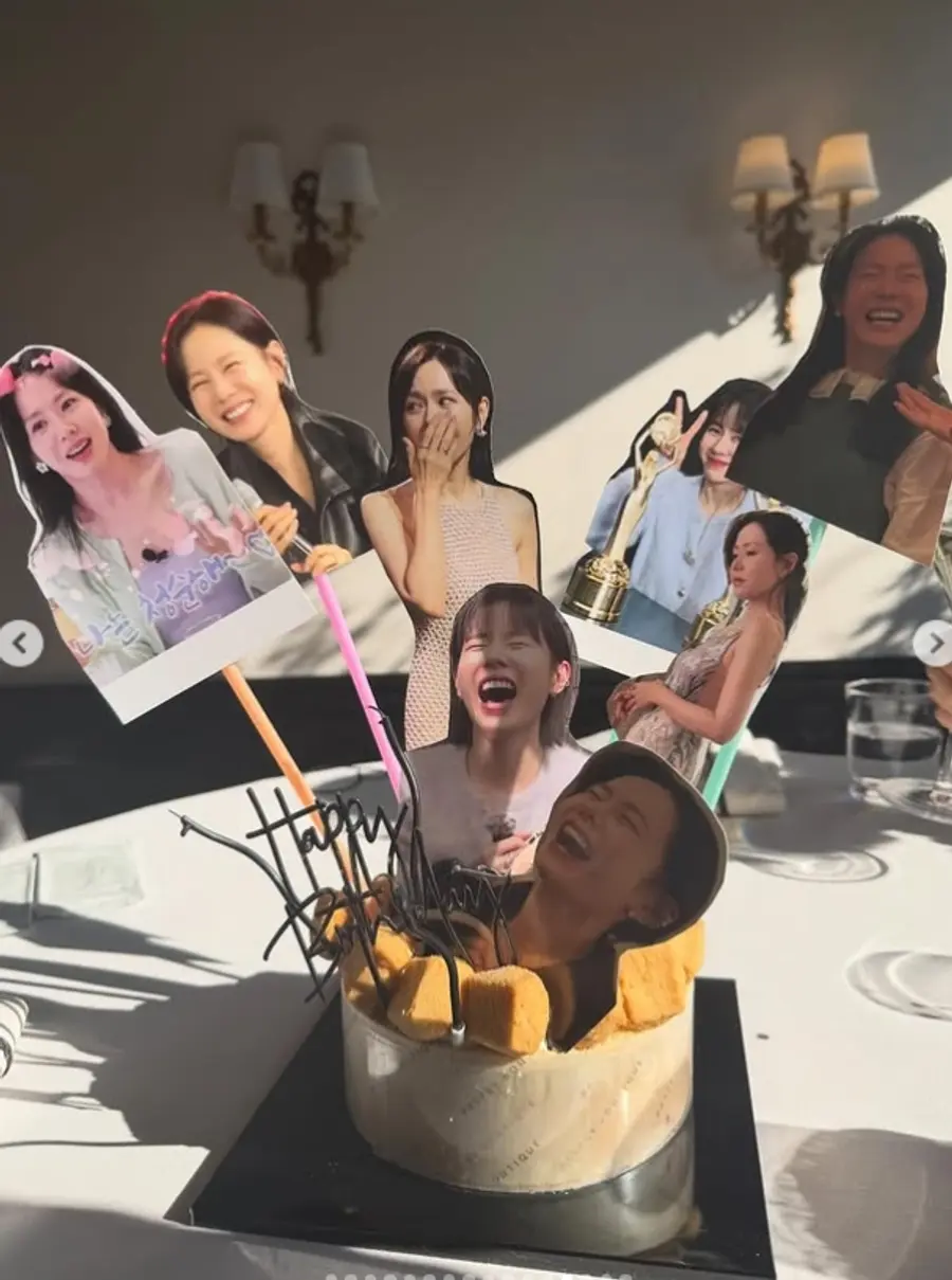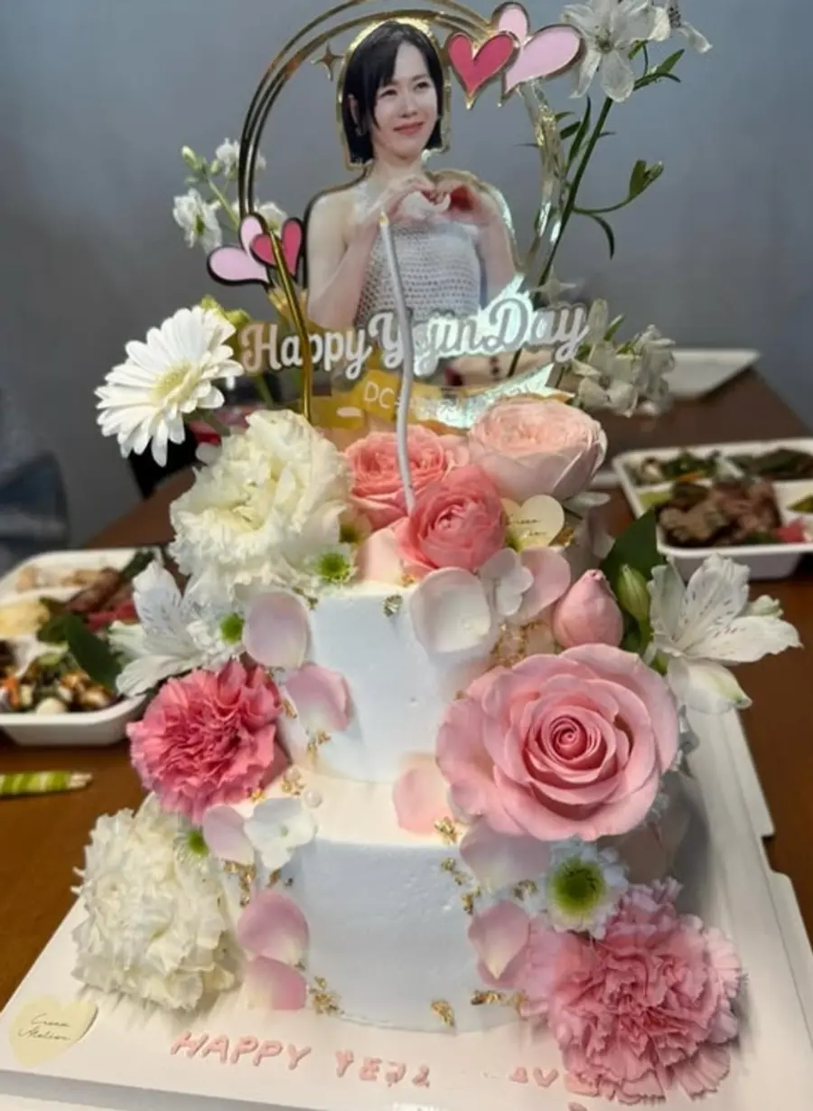 公開された写真の中でソン・イェジンは祝福のケーキと花かごがいっぱいの空間で明るい笑顔を見せている。華やかな飾り付けよりも輝く彼女の美しさが目を引く。