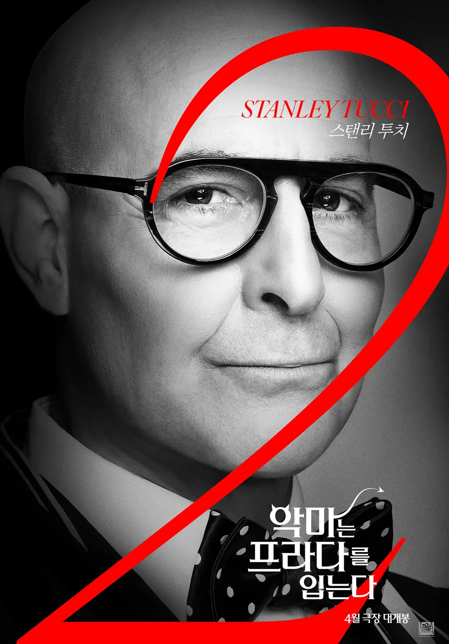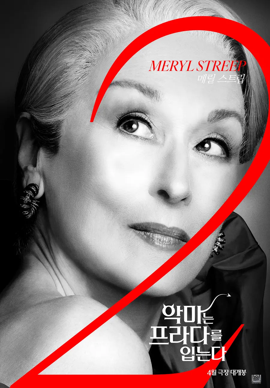 今回公開されたメインポスターには 〈プラダを着た悪魔〉の世界的なシンドロームを牽引した伝説的なキャラクターたちがファッション雑誌の表紙を連想させる強烈なスタイリングで登場し、視線を圧倒する。真っ白な階段を背景に中央を占めた『ミランダ』(メリル・ストリープ)は、優雅に舞う強烈なレッドドレスとカリスマあふれる眼差しで、時が経っても変わらない『ランウェイ』編集長の威厳を余すところなく表現している。その隣には『ランウェイ』の新任フィーチャーエディターとして戻ってきた『アンドレア』(アン・ハサウェイ)が洗練されたホワイトスーツでオーラを放ち、期待感を高めている。ブラックドレスでシックさを引き立てた『エミリー』(エミリー・ブラント)も余裕のあるポーズと気品ある雰囲気で強烈な存在感を残し、ここに特有のウィットとセンスで『ランウェイ』をしっかり守ってきた『ナイジェル』(スタンリー・トゥッチ)も加わり、重みを増し、今後展開される新しい物語への興味を刺激する。