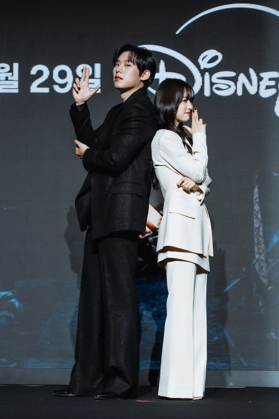 まず、キム・ソンフン監督は「偶然、密輸組織の1500億相当の金を偶然手にすることになった『キム・ヒジュ』という人物が、その金を欲するという欲望に火がつき、そこから起きていく出来事を描いた物語です」と 〈ゴールドランド〉を紹介し、制作発表会の幕開けを告げた。 〈ゴールドランド〉への出演を決めたきっかけについて、パク・ボヨンは「ジャンル的な部分でも挑戦したかったですし、監督さんが“あなたを見たら『お金を返してくれそうなイメージ』だね”っておっしゃったんです。そのイメージを持っている人が、そうでない選択をしたときに、見ている方に別の感情を与えられるんじゃないかと思って、私も気持ちが動きました」と語り、初の犯罪ジャンルへの挑戦の抱負を明かした。さらに、ディズニープラスのジャンル作品が築いてきたヒットの系譜の中で、新たな『欲望』シリーズの誕生を予告した。